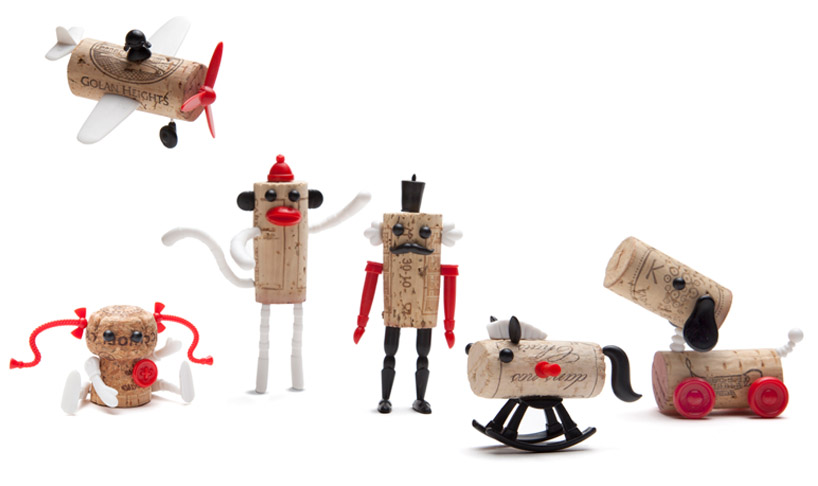 bring your cork collection to life with six classic, whimsical characters such as: ‘karl’ the wooden soldier, ‘rocky’ the rocking horse, ‘ralf’ the pull up dog, ‘nelson’ the sock monkey, and ‘captain curtis’ the brave pilot.